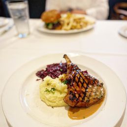 Stopped by this American diner type restaurant for dinner on a short trip to Napa due to many many recommendations by friends and family. Our reservations was for 8 for 10 people. We showed up at 7:40 and was told to wait outside. We went for a stroll in the nice little farm right by the parking lot. Our table was ready around 8:15 or so but to our surprise, we sat at two tables next to each others. So all the guys sat at a table for four and the wives and two kids at a table for 6. I had the Pinot flight which was a nice option to try two local Pinots and one French one. We also got the onion rings side dish for appetizers. Really thinly cut onions deep fried with a tomatoes and apple ketchup. It was different and we devoured it. The other guys ordered a couple of coktails. Gimlet, old fashioned and Bloody Mary. The old fashioned was full of ice which was not to our liking but the gimlet and Bloody Mary were great. I got their signature Mongolian pork chop since everyone raves about it. Ordered it medium and it comes with mashed potatoes. Surprisingly our food arrived very early and unfortunately my pork chop was very cold. At that point I was way too hungry and didn't make a fuss about it and ate it. Although it was cold, it was cooked well and was tender. We skipped the dessert. The server was in a rush at the beginning but then relaxed abit and was very friendly. The bus boys are all super nice and courteous. The location is very nice and right across a nice vineyard.... Ambience 5/5, service 4/5, food was 4/5.